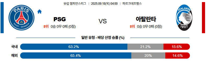 파리생제르망은 파비안 루이스의 전진 침투와 뎀벨레·바르콜라의 측면 공격을 통해 공격 루트를 다변화할 수 있습니다. 아탈란타는 수비-중원 간격이 반복적으로 흔들리며 불안정한 전술 구조를 드러내고 있습니다. 따라서 이 경기는 PSG가 홈에서 공격 템포를 장악하며 승리를 거머쥘 가능성이 높습니다.
