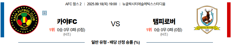 카야FC 대 탬파인스로버스 AFC챔피언스리그2 09월18일 맞대결 생중계, 스포츠중계, 스포츠분석