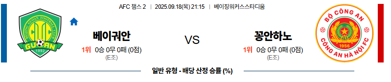 베이징궈안 대 공안 AFC챔피언스리그2 09월18일 맞대결 생중계, 스포츠중계, 스포츠분석