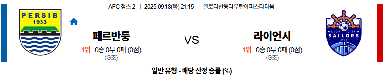 페르시브반둥 대 라이언시티 AFC챔피언스리그2 09월18일 맞대결 생중계, 스포츠중계, 스포츠분석