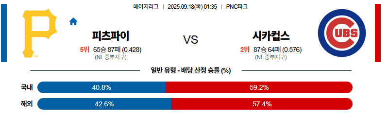 피츠버그 대 시카고컵스 MLB 09월18일 맞대결 생중계, 스포츠중계, 스포츠분석