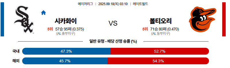 시카고W 대 볼티모어 MLB 09월18일 맞대결 생중계, 스포츠중계, 스포츠분석