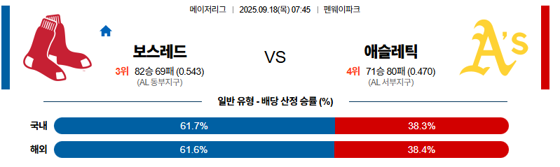 보스턴 대 애슬레틱스 MLB 09월18일 맞대결 생중계, 스포츠중계, 스포츠분석