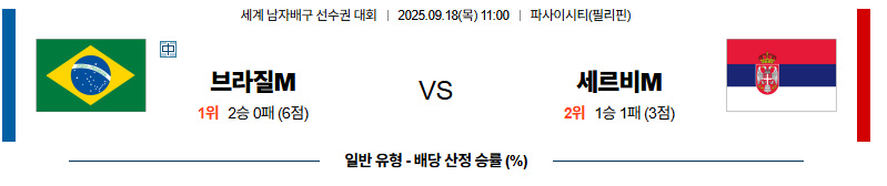 브라질 대 세르비아 세계남자배구선수권대회 09월18일 맞대결 생중계, 스포츠중계, 스포츠분석