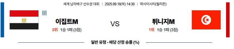 이집트 대 튀니지 세계남자배구선수권대회 09월18일 맞대결 생중계, 스포츠중계, 스포츠분석