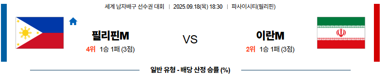 필리핀 대 이란 세계남자배구선수권대회 09월18일 맞대결 생중계, 스포츠중계, 스포츠분석