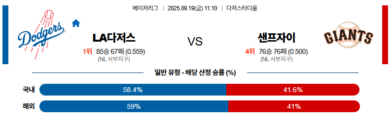 LA다저스 대 샌프란시스코 MLB 09월19일 맞대결 생중계, 스포츠중계, 스포츠분석