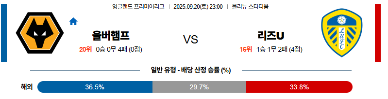 울버햄튼 대 리즈유나이티드 프리미어리그 09월20일 맞대결 생중계, 스포츠중계, 스포츠분석