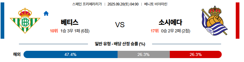 베티스 대 소시에다드 라리가 09월20일 맞대결 생중계, 스포츠중계, 스포츠분석