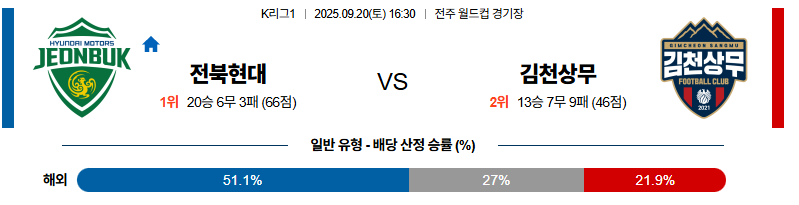 전북 대 김천 K리그1 09월20일 맞대결 생중계, 스포츠중계, 스포츠분석