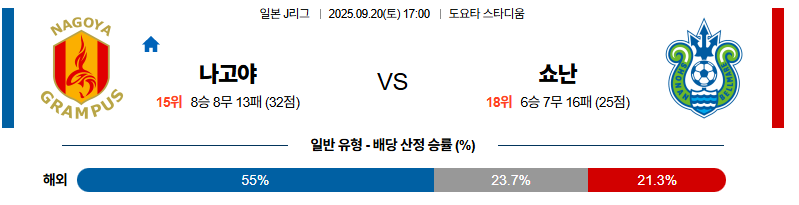 나고야 대 쇼난 J리그1 09월20일 맞대결 생중계, 스포츠중계, 스포츠분석