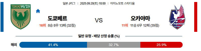 도쿄베르디 대 오카야마 J리그1 09월20일 맞대결 생중계, 스포츠중계, 스포츠분석