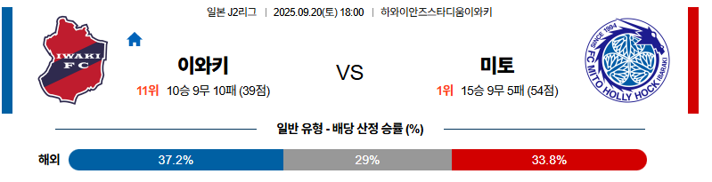 이와키 대 미토홀릭 J리그2 09월20일 맞대결 생중계, 스포츠중계, 스포츠분석