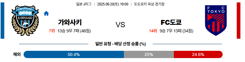 가와사키 대 FC도쿄 J리그1 09월20일 맞대결 생중계, 스포츠중계, 스포츠분석