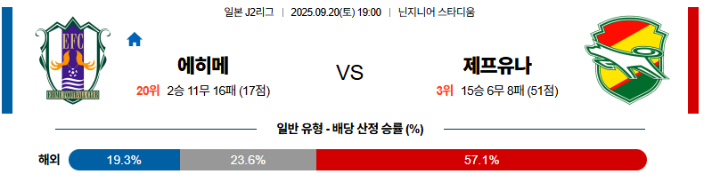에히메 대 제프유나이티드 J리그2 09월20일 맞대결 생중계, 스포츠중계, 스포츠분석