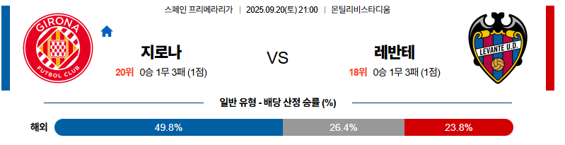 지로나 대 레반테 라리가 09월20일 맞대결 생중계, 스포츠중계, 스포츠분석
