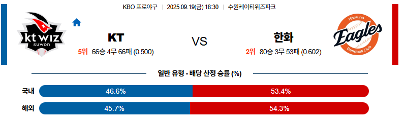 KT 대 한화 KBO 09월19일 맞대결 생중계, 스포츠중계, 스포츠분석