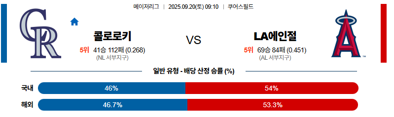 콜로라도 대 LA에인절스 MLB 09월20일 맞대결 생중계, 스포츠중계, 스포츠분석