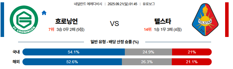 흐로닝언 대 텔스타 에레디비지 09월21일 맞대결 생중계, 스포츠중계, 스포츠분석