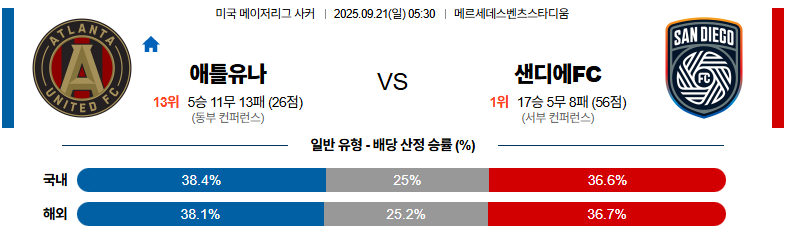 애틀랜타 대 샌디에고 메이저리그사커 09월21일 맞대결 생중계, 스포츠중계, 스포츠분석