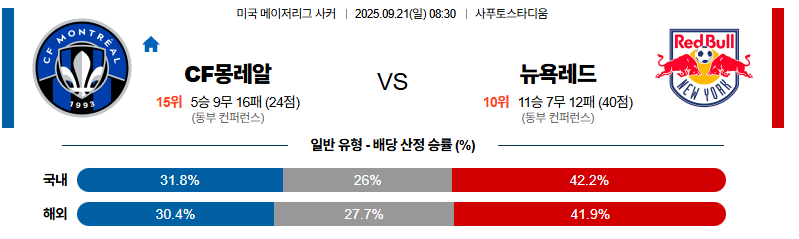 몬트리올 대 뉴욕레드불 메이저리그사커 09월21일 맞대결 생중계, 스포츠중계, 스포츠분석