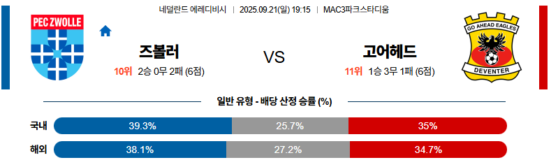 즈볼레 대 고어헤드이글스 에레디비지 09월21일 맞대결 생중계, 스포츠중계, 스포츠분석