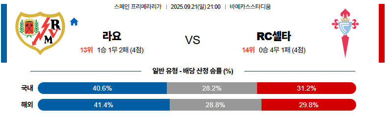 라요 대 셀타비고 라리가 09월21일 맞대결 생중계, 스포츠중계, 스포츠분석