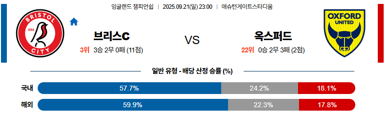 브리스톨 대 옥스퍼드 잉글랜드챔피언쉽 09월21일 맞대결 생중계, 스포츠중계, 스포츠분석