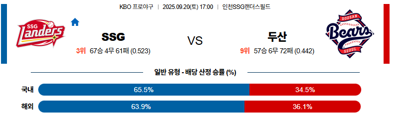 SSG 대 두산 KBO 09월20일 맞대결 생중계, 스포츠중계, 스포츠분석