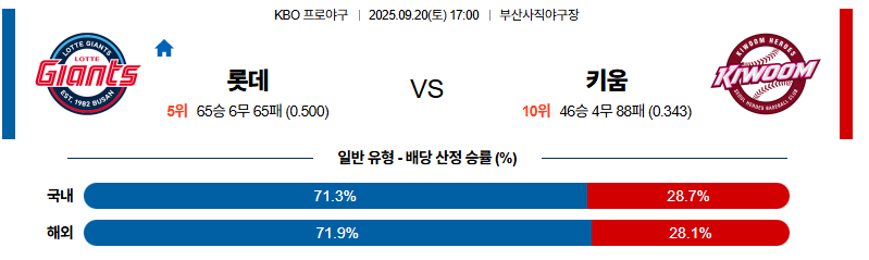 롯데 대 키움 KBO 09월20일 맞대결 생중계, 스포츠중계, 스포츠분석