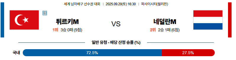 튀르키예 대 네덜란드 세계남자배구선수권대회 09월20일 맞대결 생중계, 스포츠중계, 스포츠분석