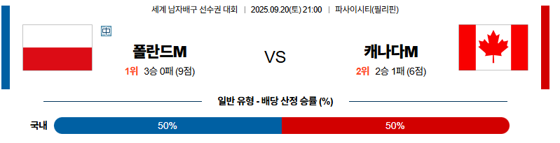 폴란드 대 캐나다 세계남자배구선수권대회 09월20일 맞대결 생중계, 스포츠중계, 스포츠분석