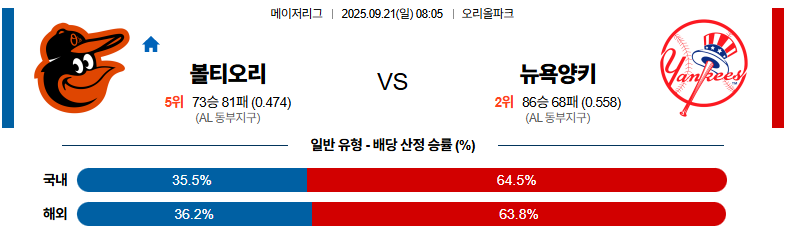 볼티모어 대 뉴욕양키스 MLB 09월21일 맞대결 생중계, 스포츠중계, 스포츠분석