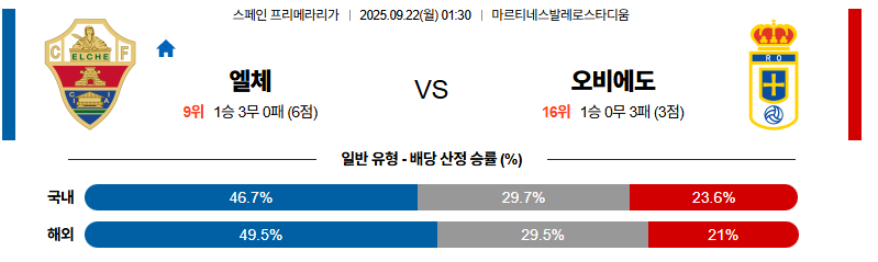 엘체 대 오비에도 라리가 09월22일 맞대결 생중계, 스포츠중계, 스포츠분석