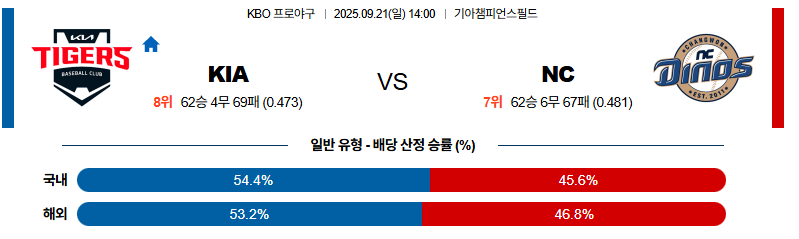 KIA 대 NC KBO 09월21일 맞대결 생중계, 스포츠중계, 스포츠분석