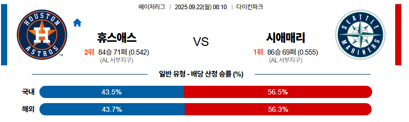 휴스턴 대 시애틀 MLB 09월22일 맞대결 생중계, 스포츠중계, 스포츠분석
