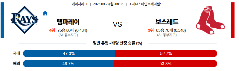 탬파베이 대 보스턴 MLB 09월22일 맞대결 생중계, 스포츠중계, 스포츠분석