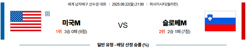 미국 대 슬로베니아 세계남자배구선수권대회 09월22일 맞대결 생중계, 스포츠중계, 스포츠분석