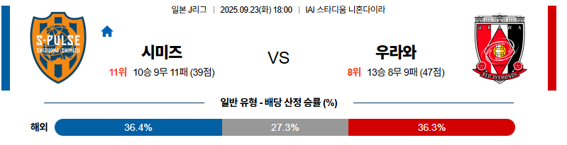 시미즈 대 우라와 J리그1 09월23일 맞대결 생중계, 스포츠중계, 스포츠분석