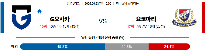 감바오사카 대 요코하마마리노스 J리그1 09월23일 맞대결 생중계, 스포츠중계, 스포츠분석