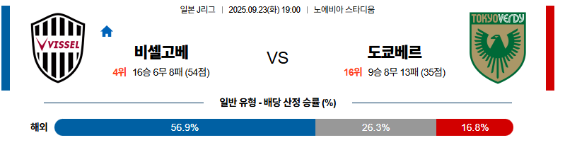 비셀고베 대 도쿄베르디 J리그1 09월23일 맞대결 생중계, 스포츠중계, 스포츠분석