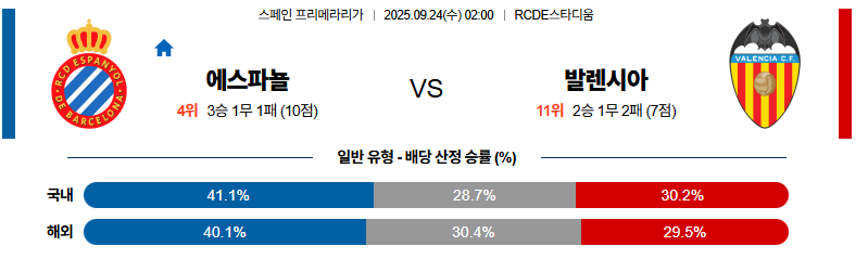 에스파뇰 대 발렌시아 라리가 09월24일 맞대결 생중계, 스포츠중계, 스포츠분석