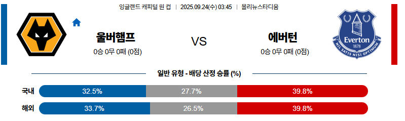 울버햄튼 대 에버튼 잉글랜드캐피털원컵 09월24일 맞대결 생중계, 스포츠중계, 스포츠분석