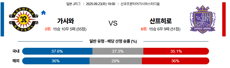 가시와레이솔 대 산프레체히로시마 J리그1 09월23일 맞대결 생중계, 스포츠중계, 스포츠분석