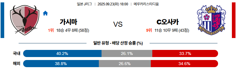 감바오사카 대 요코하마마리노스 J리그1 09월23일 맞대결 생중계, 스포츠중계, 스포츠분석