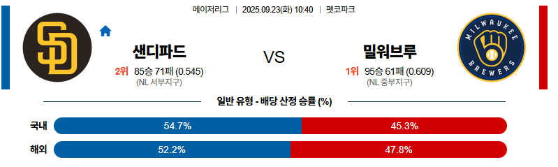 샌디에이고 대 밀워키 MLB 09월23일 맞대결 생중계, 스포츠중계, 스포츠분석