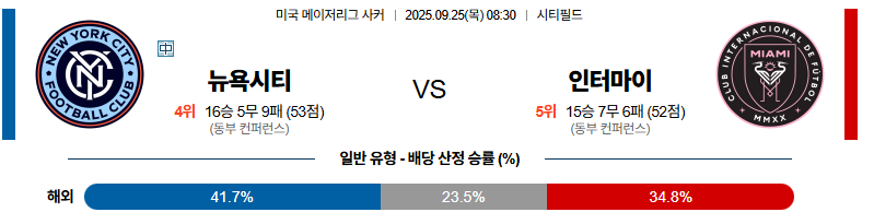 뉴욕시티 대 인터마이애미 메이저리그사커 09월25일 맞대결 생중계, 스포츠중계, 스포츠분석