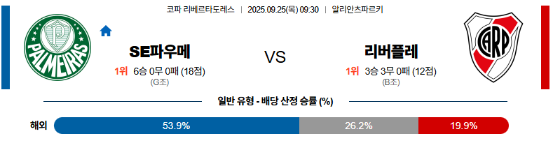 팔메이라스 대 리버플레이트 코파리베르타도레스 09월25일 맞대결 생중계, 스포츠중계, 스포츠분석