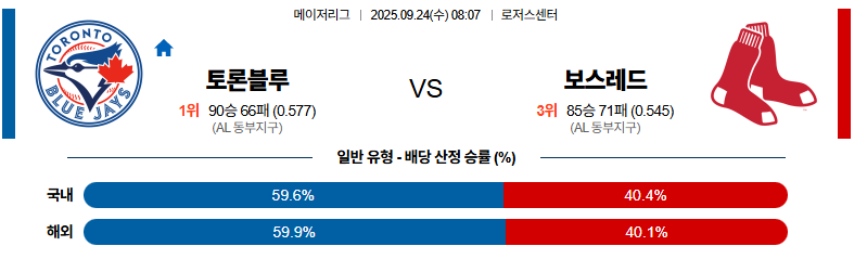 토론토 대 보스턴 MLB 09월24일 맞대결 생중계, 스포츠중계, 스포츠분석