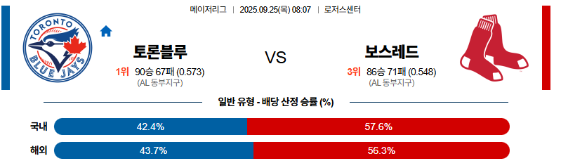 토론토 대 보스턴 MLB 09월25일 맞대결 생중계, 스포츠중계, 스포츠분석